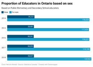 This especially true in education where, according to Statistics Canada, about 75 per cent of educators in the public school sector are women based on numbers from 2018-19.